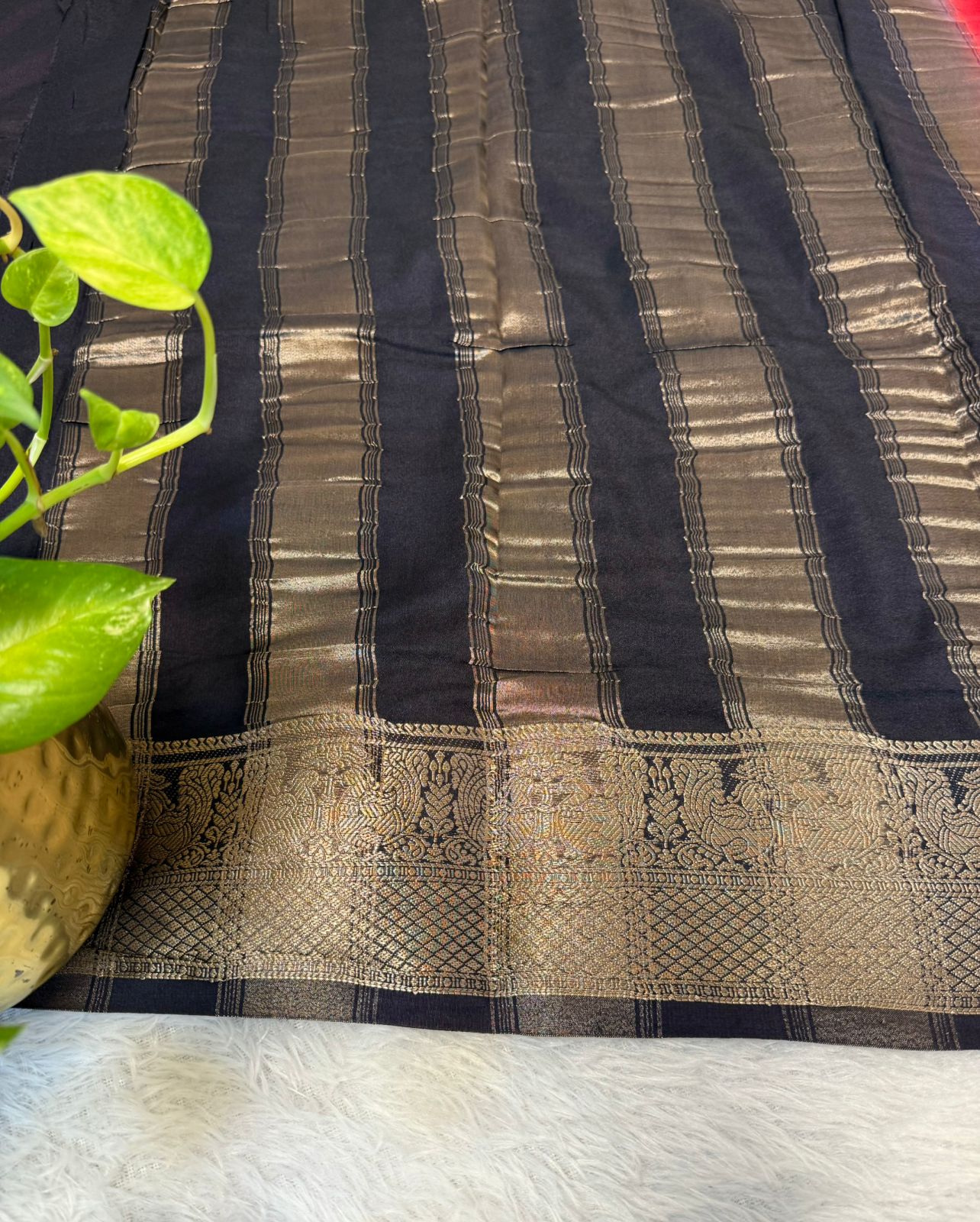 Semi Crepe silk with Peacock boarder in Red and Navy blue